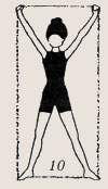 Упражнение на потягивание. Свяжите два конца бельевой веревки, широко расставленными ногами наступите на нее. Скользя руками по веревке, разведите их в стороны, пока не почувствуете, что веревка натянулась (10).