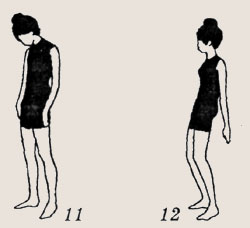 Живот и ягодицы. Слегка расставьте ноги, расслабьтесь (11). Резко напрягите живот и ягодицы (12). Оставайтесь в таком напряженном положении секунд десять, после чего снова расслабьтесь. Это упражнение можно выполнять, свободно двигаясь по комнате под музыку и внезапно резко останавливаясь и напрягаясь.