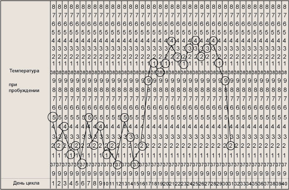 Мужские половые органы Семявыносящий проток опорожняется в мужской мочеточник (уретру), идущий от мочевого пузыря до конца пениса. Мочеточник выводит из мужского организма и мочу, и семя. Во время мочеиспускания и большую часть остального времени пенис мягкий или вялый. При половом возбуждении кровь быстро заполняет ткани пениса, в результате он увеличивается и становится твердым, что облегчает его введение во влагалище при половом акте. При эрекции мышцы сокращаются и перекрывают проток из мочевого пузыря, не допуская смешения мочи и спермы. Во время оргазма происходит эякуляция — непроизвольное сокращение мышц, которое выталкивает сквозь мочеточник два-три миллилитра семени, содержащих приблизительно 240-360 миллионов сперматозоидов. ЗАЧАТИЕ Обычно зачатие происходит в маточной трубе, куда после овуляции попадает яйцеклетка. Сперматозоиды перемещаются сначала в канал шейки матки, затем в ее полость и далее в маточные трубы, где находится яйцеклетка. Срок жизни яйцеклетки короток -- всего несколько часов, сперматозоиды сохраняют способность к оплодотворению в течение нескольких суток. Понятно, что самое благоприятное время для оплодотворения -- это период овуляции с небольшими отклонениями в одну и другую сторону. Поскольку продолжительность жизни яйцеклетки невелика, дни перед овуляцией более предпочтительны для зачатия, чем после нее, т. к. сперматозоидам требуется более суток, чтобы попасть в маточные трубы. Рекомендуется в течение 3-5 дней перед овуляцией воздерживаться or половых сношений, что позволит увеличить число созревших активных сперматозоидов в яичках. Вероятность зачатия для женщин немало зависит от особенностей ее внутренних половых органов. При нормальном их расположении предпочтительна во время полового акта поза лежа на спине, под ягодицы можно подложить подушку, после окончания акта приподнять ноги и сохранять это положение около получаса. При отклонении матки кзади облегчить проникновение сперматозоидов в цервикальный канал помогает коленно-локтевая поза во время или после полового акта. Определение даты овуляции и расчет благоприятных дней для наступления беременности удобно производить по температурной кривой. Температура измеряется в прямой кишке (базальная или ректальная температура) в течение всего менструального цикла в одно и то же время, предпочтительно утром сразу после пробуждения. Для зачатия имейте половые сношения во время фертильных дней. Вы можете определить свою фертильную фазу, аккуратно измеряя температуру термометром для регистрации даже небольшого ее повышения. Используйте правило изменения температуры.